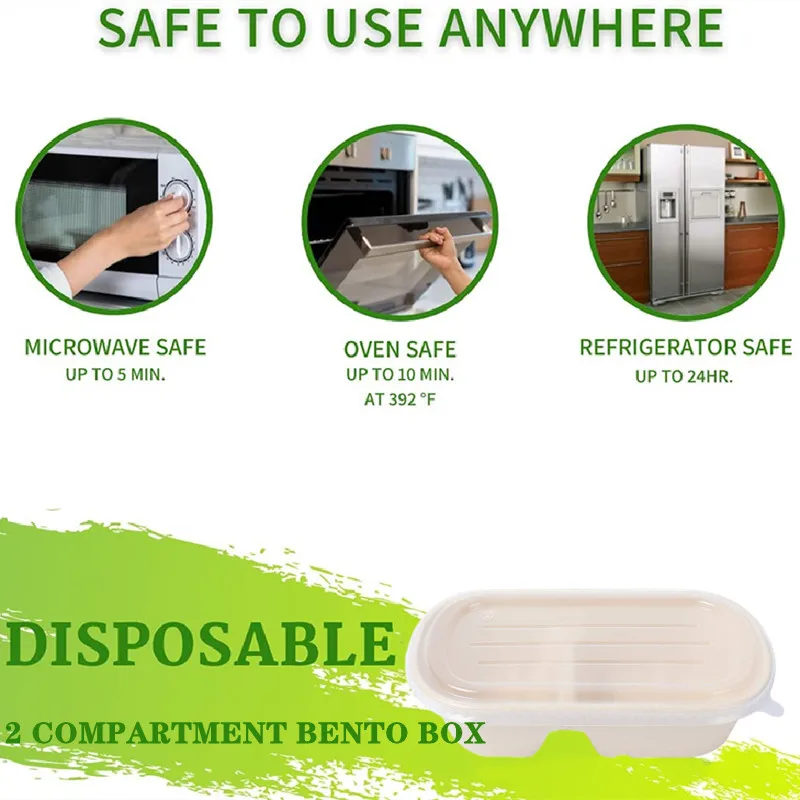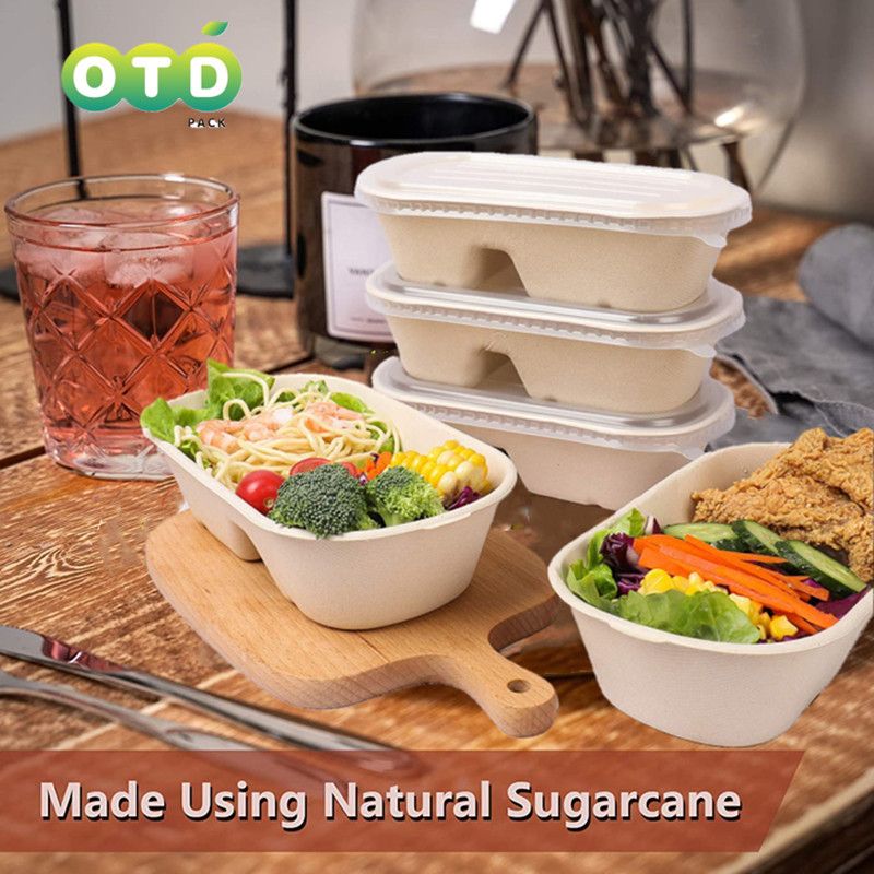 Sugarcane Bagasse Compostable Rectangle Container With PP Lids, Meal Prep Microwave Safe Takeout Container