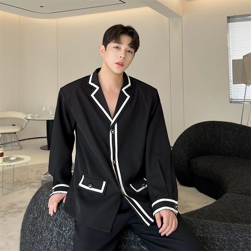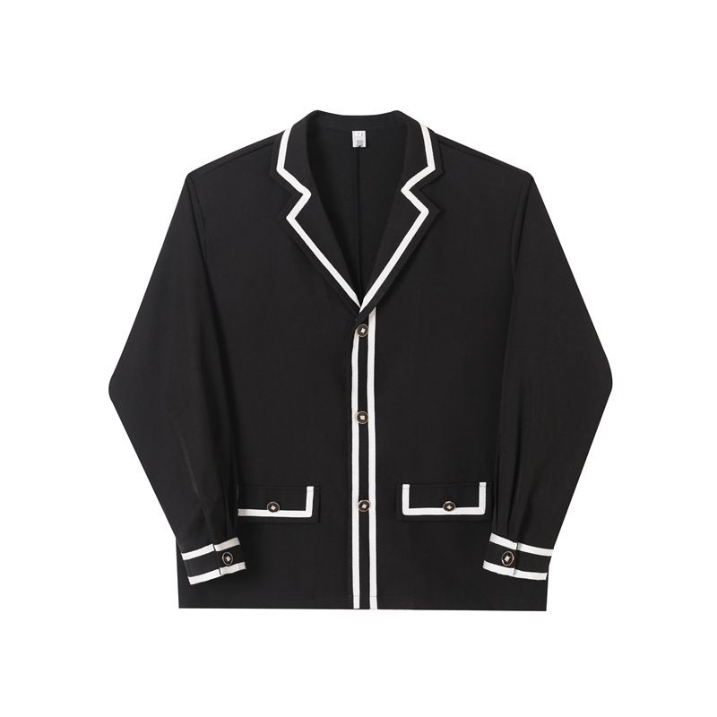 Suit Lapel Shirt Men Long Sleeve Black L