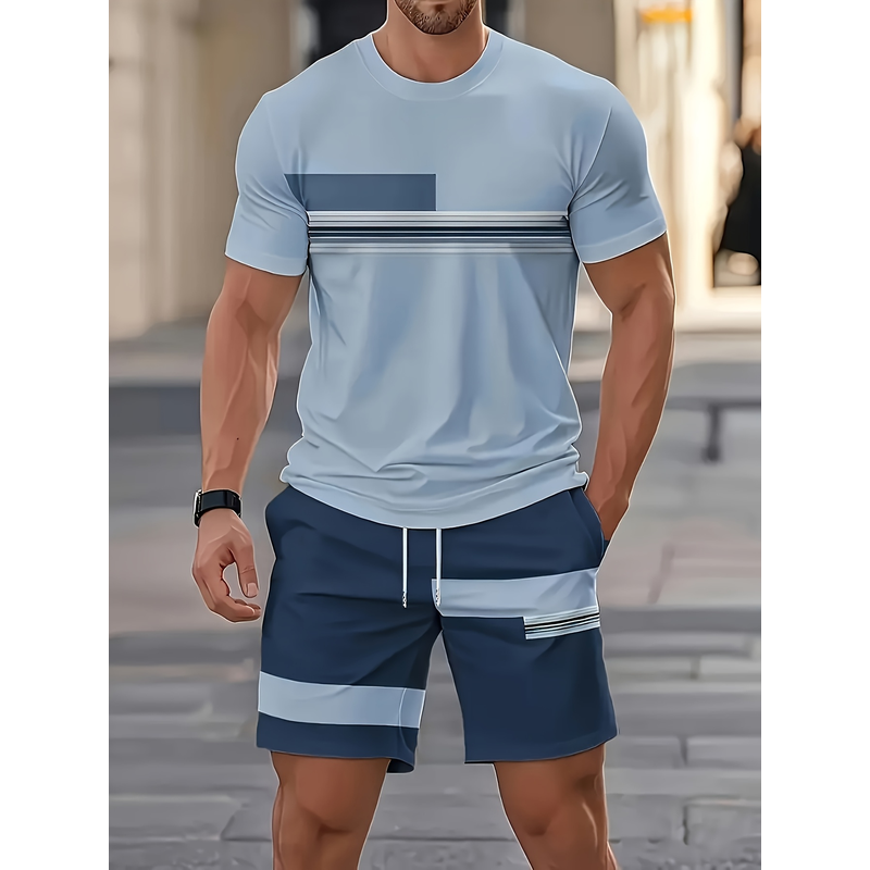 Summer 2025 Bestseller Men's short-sleeved suit Breathable casual and fashionable 3D printed outdoor streetwear