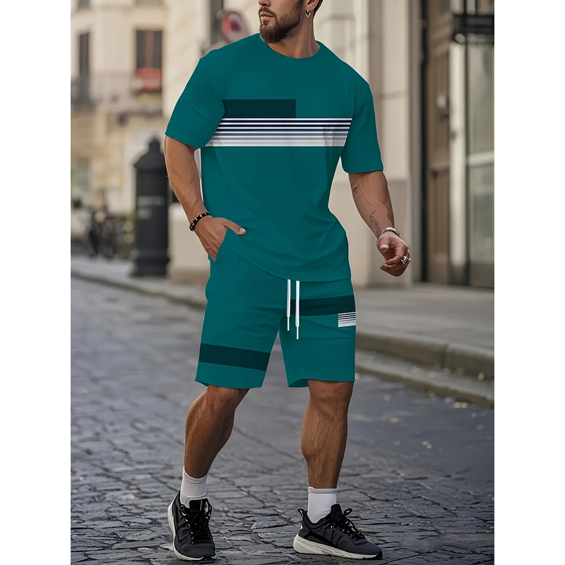 Summer 2025 Bestseller Men's short-sleeved suit Breathable casual and fashionable 3D printed outdoor streetwear