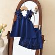 Summer 3-7 Years Girls Fashion Clothes Korean Version 3D Flower Decoration Suspenders Top + Shorts 2 Pcs Set Kids Casual Wear