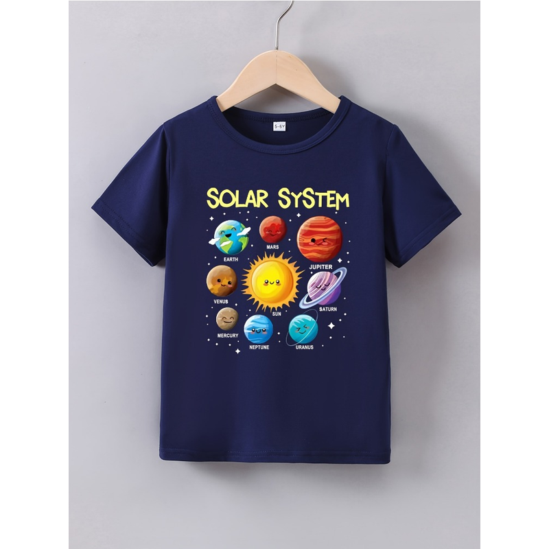 Summer Baby Boy Clothes Kid Girls Casual Solar System Planets Printed T-shirts Children Fashion Crew Neck Short Sleeve Top
