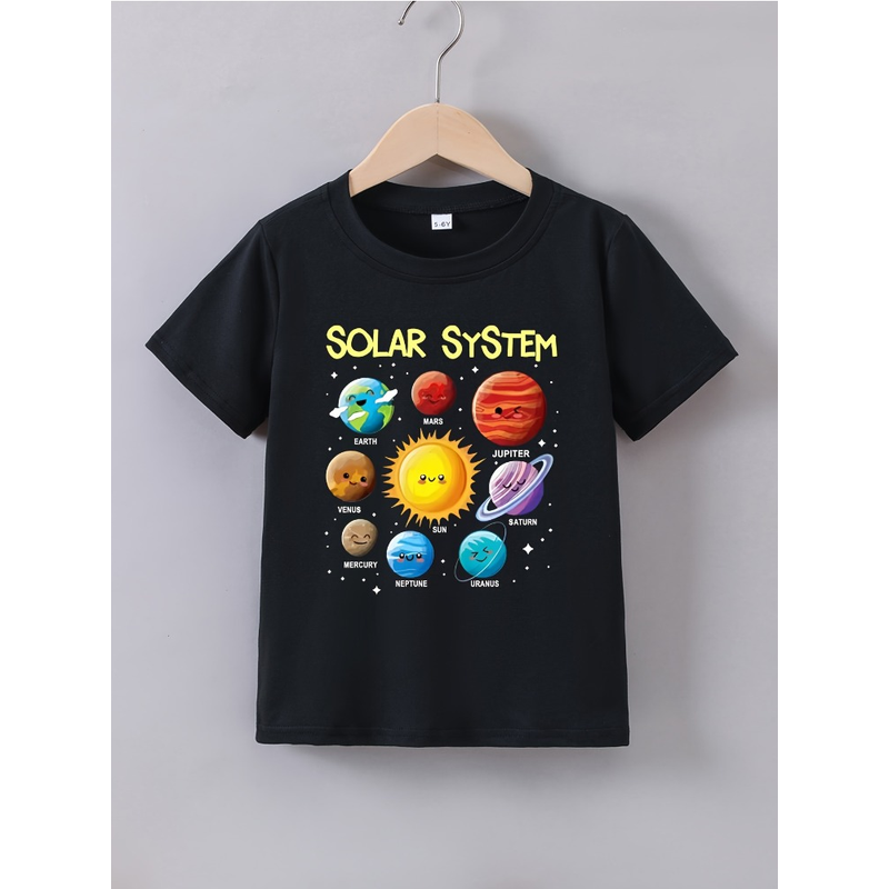 Summer Baby Boy Clothes Kid Girls Casual Solar System Planets Printed T-shirts Children Fashion Crew Neck Short Sleeve Top