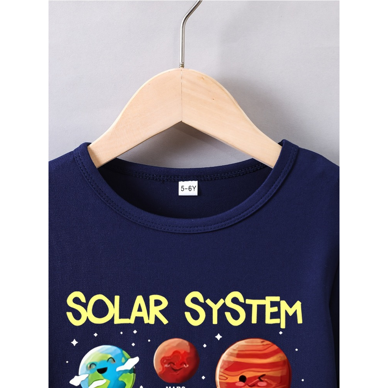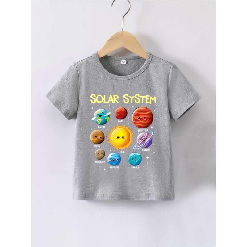 Summer Baby Boy Clothes Kid Girls Casual Solar System Planets Printed T-shirts Children Fashion Crew Neck Short Sleeve Top