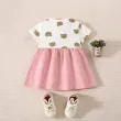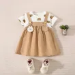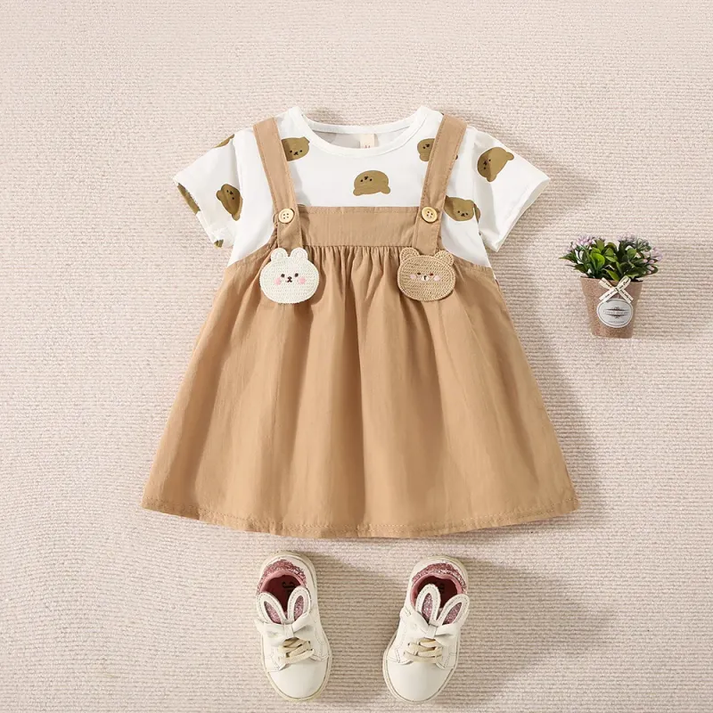 Summer Baby Girl Cotton Teddy Bear Printed Short Sleeved Dress For Girls Fake Two-Piece Strap Dress Cute Dress