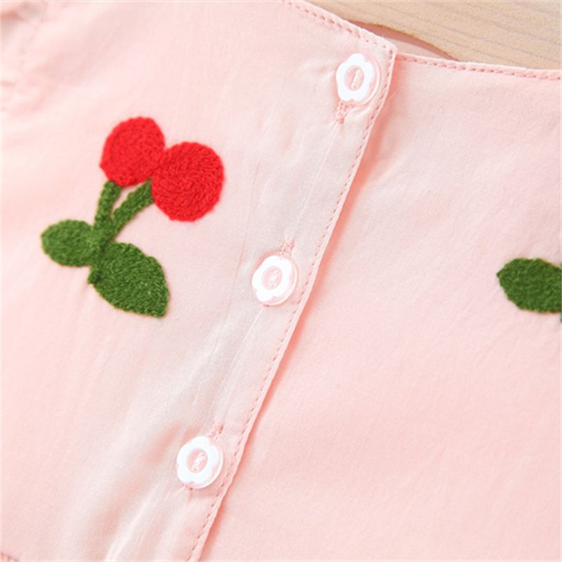 Summer Baby Girl Dress Girl's Cherry Embroidered Round Neck Small Flying Sleeves Princess Dress Children's Dress