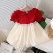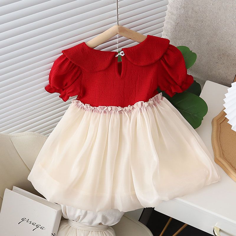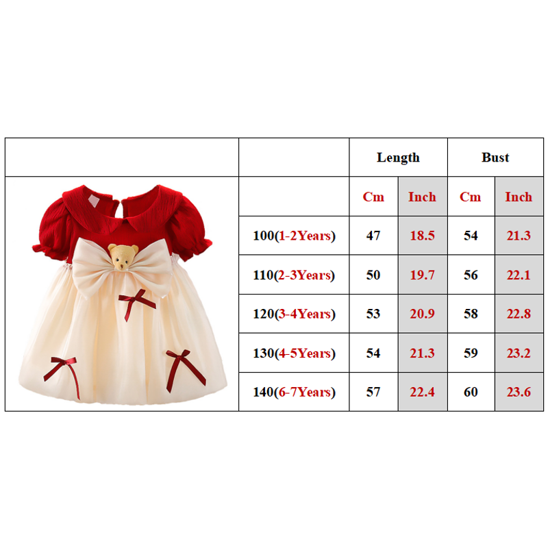 Summer Baby Girl Dress Puff Sleeve Birthday Costume Doll Collar Cute Princess Dress Kid Girl Clothes Bow Bear Child Skirt A1349