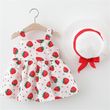 Summer Baby Girl's Dress Small Round Dot Strawberry Print Chest Bow Daily Casual Dress with Hat