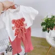 Summer Baby Girls Clothes Set Toddler Kid Cartoon Bear Tshirt and Flared Pants Suit Children Short Sleeve Top Bottom Tracksuit