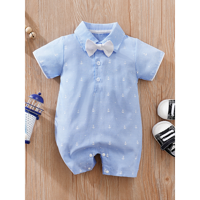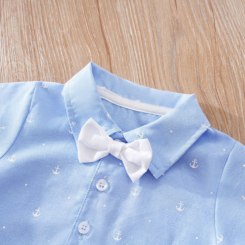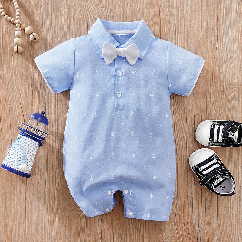 Summer Boys And Girls Art Style Handsome Shirt With Sea Anchor All Over Print Comfortable Casual Short Sleeve Bodysuit