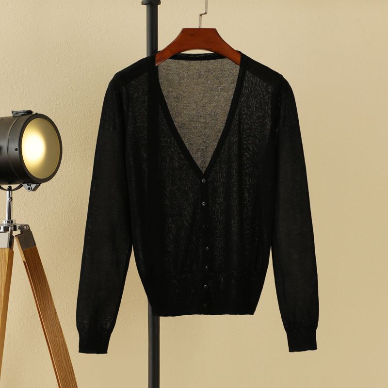 Ultra-thin and versatile, suitable for work, travel, commuting, and leisure. A classic that can be worn for a long time! Using natural cotton and nylon ice silk, the fabric is soft, cool and silky! Great for tank tops, dresses, T-shirts Knitted cardigan and pencil pants, this is the best way to cover the flesh in spring and summer In spring and summer, a T-shirt is too cold, and an extra coat is too hot? Well, a thin knitted sweater is just right。