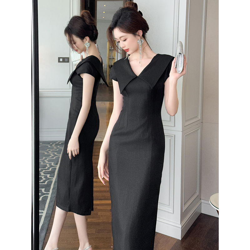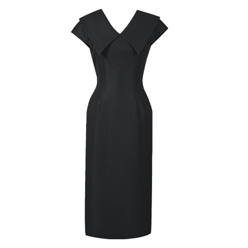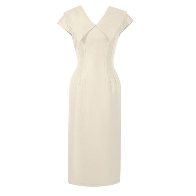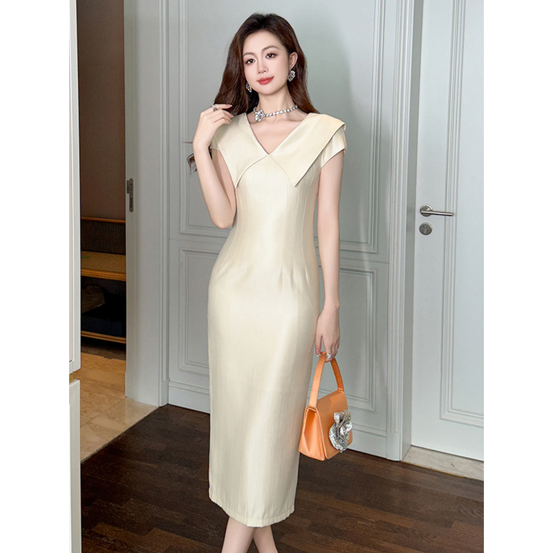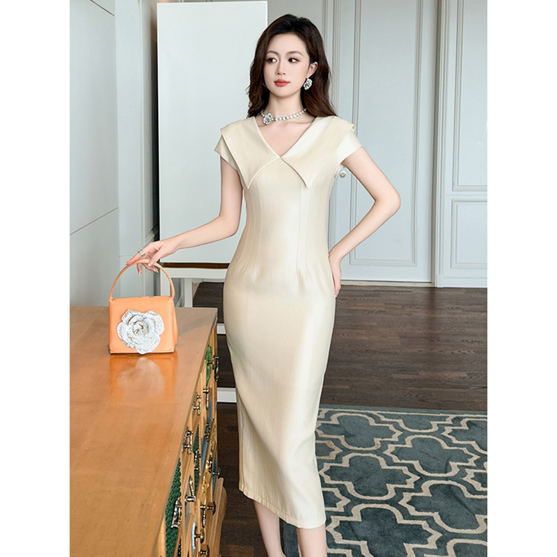 Summer Commute Formal Occasion Dress Women Clothes Elegant Lady Retro Solid Simple Lapel Short Sleeve Slim Midi Pencil Vestidos
