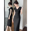 Summer Commute Formal Occasion Dress Women Clothes Elegant Lady Retro Solid Simple Lapel Short Sleeve Slim Midi Pencil Vestidos