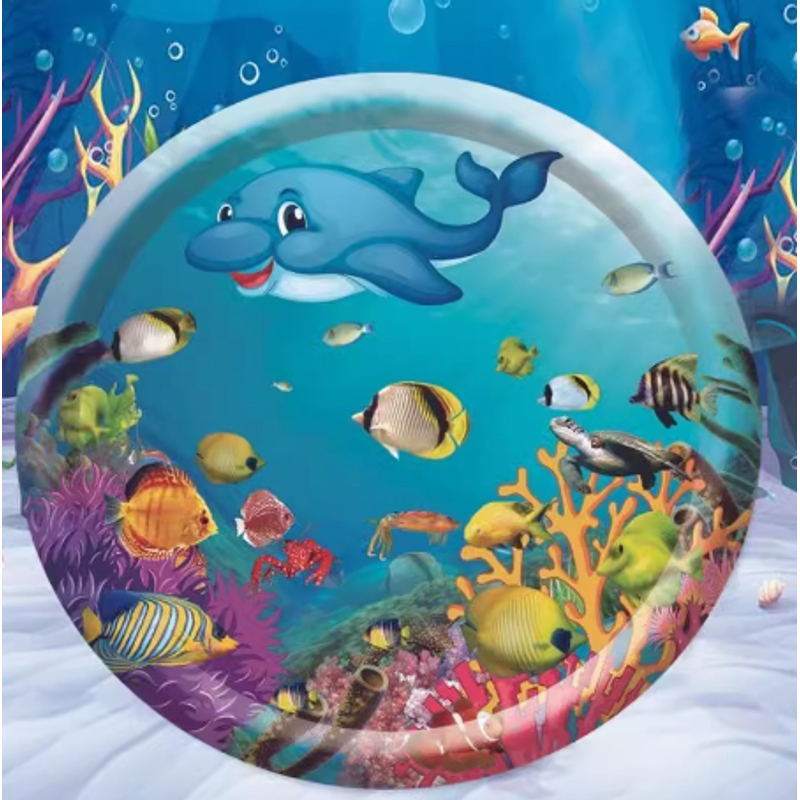 This water playmat features a fish design that captures the attention of pets and children.