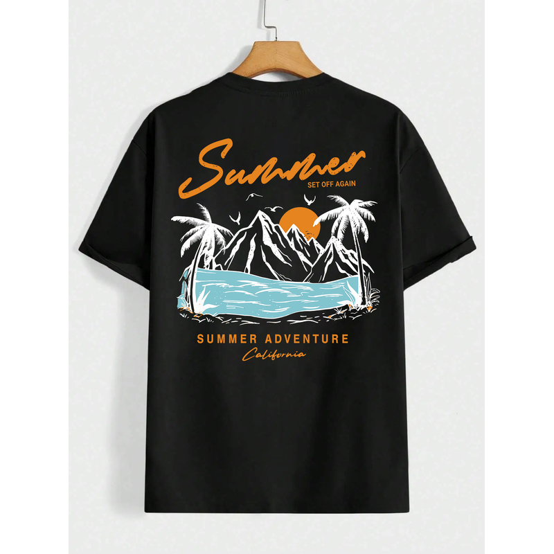 Summer Departure Adventure California Men's T-shirt Cotton Loose Black 3XL