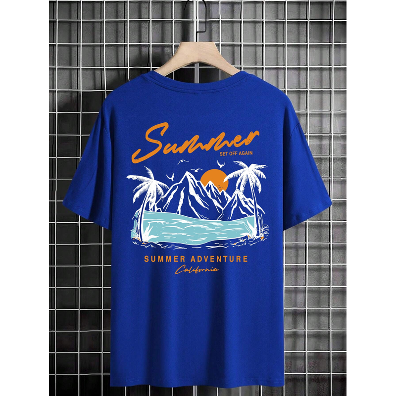 Summer Departure Adventure California Men's T-shirt Cotton Loose Blue S