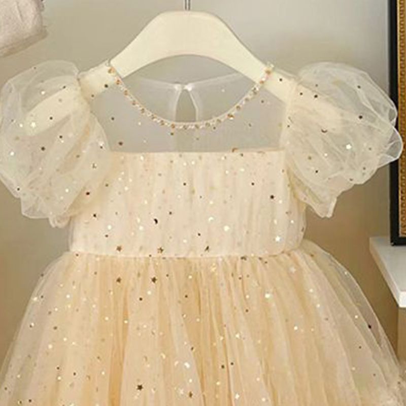 Summer Dresses Girls' Elegant Dress Girl Baby Bubble Sleeve Mesh Sequin Dress Temperament Princess Party Short Sleeve Dress