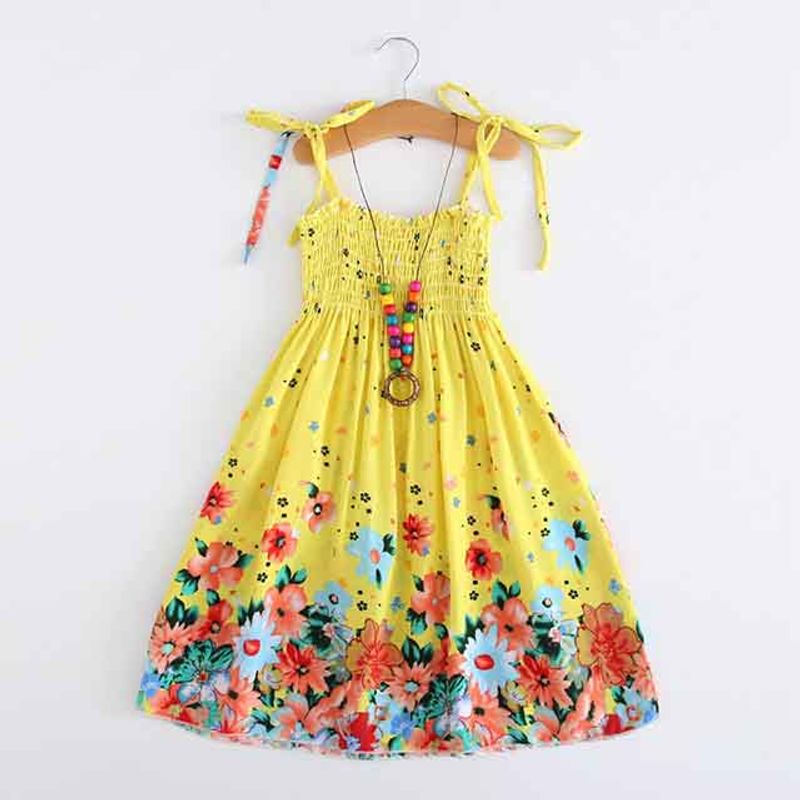 Summer Girls Floral Dress Sling Ruffles Bohemian Beach Princess Dresses for Girl Clothing 2 6 8 12 Years With Necklace Gift
