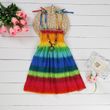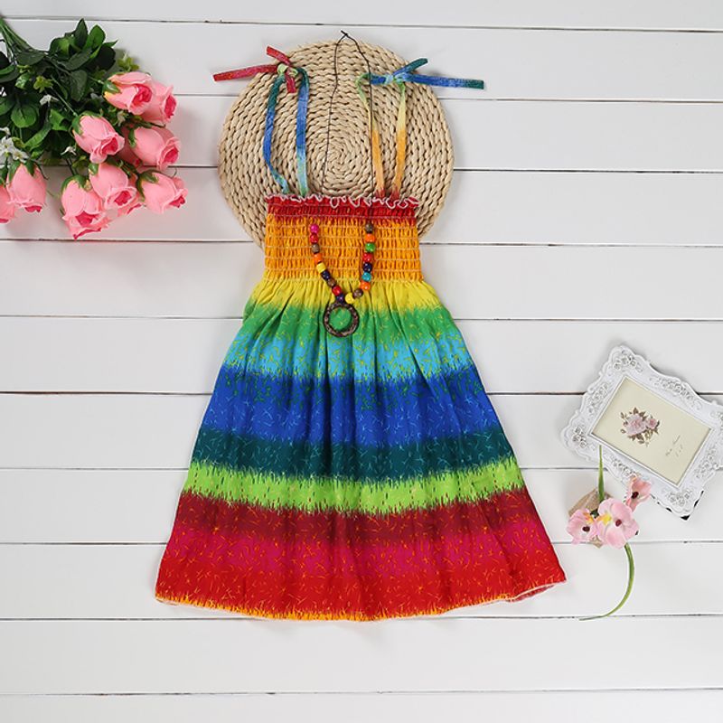 Summer Girls Floral Dress Sling Ruffles Bohemian Beach Princess Dresses for Girl Clothing 2 6 8 12 Years With Necklace Gift