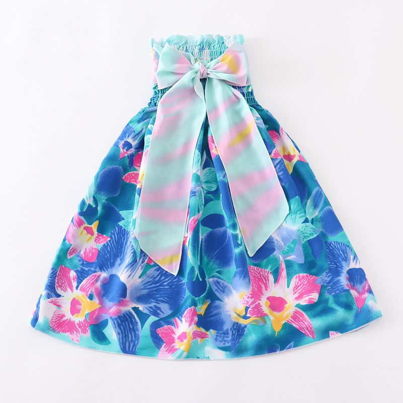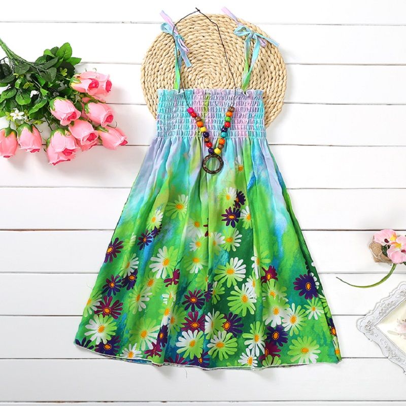 Summer Girls Floral Dress Sling Ruffles Bohemian Beach Princess Dresses for Girl Clothing 2 6 8 12 Years With Necklace Gift