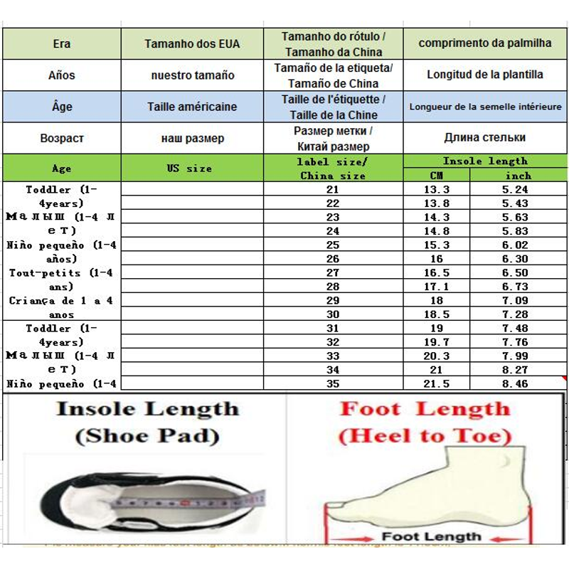 Note:Foot Length +(0.5~1)cm=insole length