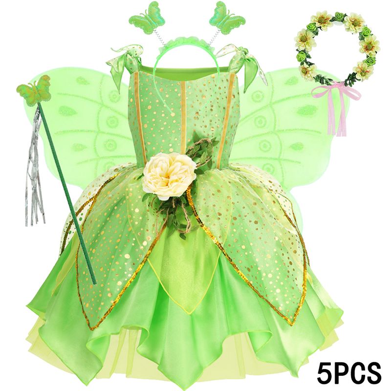 Summer Girls Tinkerbell Fairy Dresses Up for Girls Costume Kids Cosplay Flower Fairy Princess Clothes Christmas Party Outfit