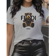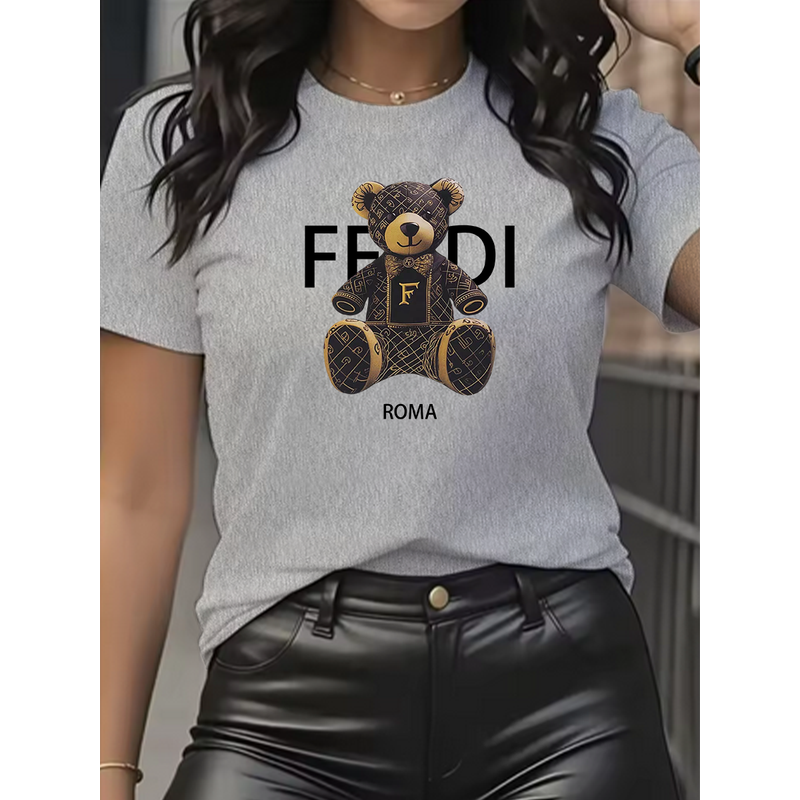 summer Graphic T-Shirt Short Sleeve Crew Neck with Soft Comfortable Spring Women's Light Blue Casual Teddy Bear