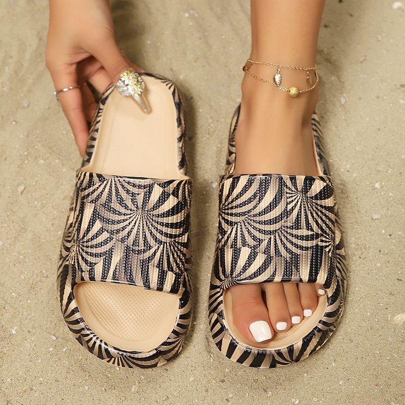 Summer Holiday Printing Soft Women Slippers Vacation Travel Beach Adjustable Double-buckle Sandals Pillow Platform Home Slippers