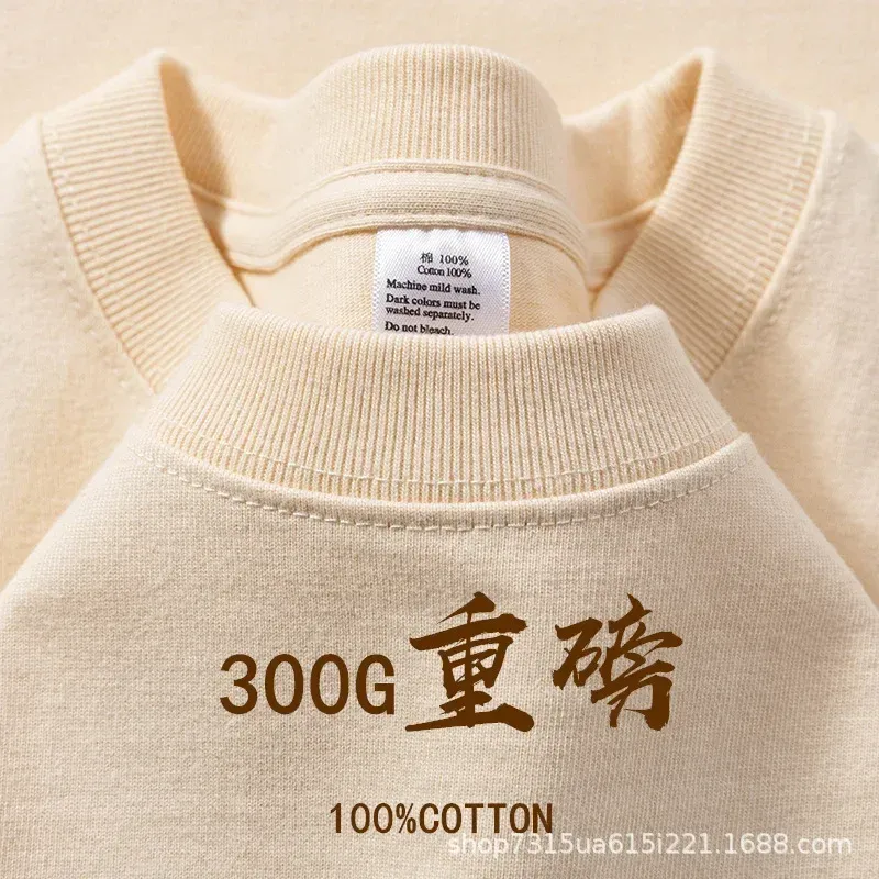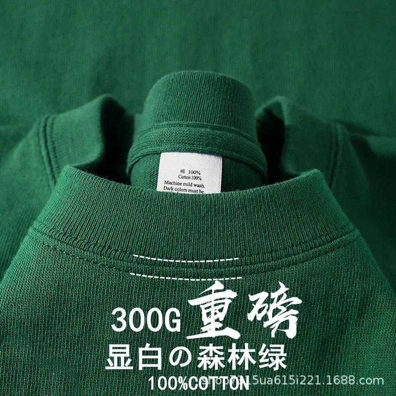 Summer Light Green Heavy Weight 300G Short Sleeved T-shirt Cotton Men's Loose Casual Base Shirt Korean Tee Women's
