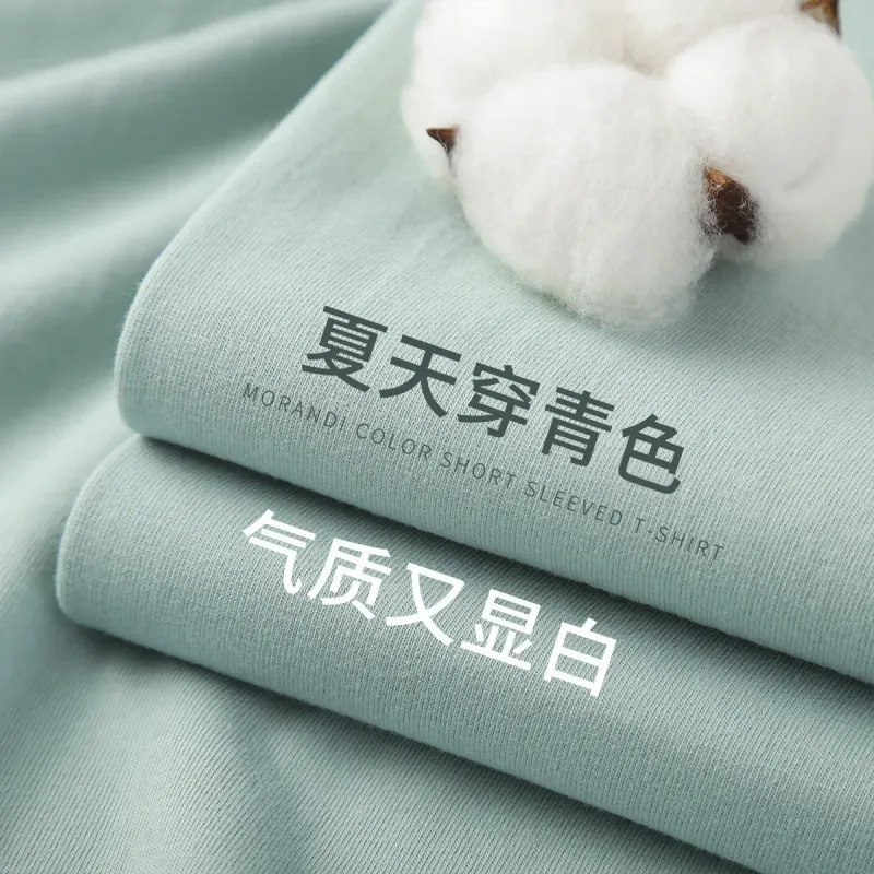 Summer Light Green Heavy Weight 300G Short Sleeved T-shirt Cotton Men's Loose Casual Base Shirt Korean Tee Women's