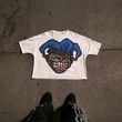 Summer Long Short Sleeve Cartoon Graphic Print T-shirt Hip Hop Harajuku Casual Round Neck Style 1 White S