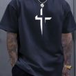 Summer men's 100% pure cotton casual loose plus size Cross Creative printed sports comfortable round neck short sleeved T-shirt