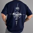 Summer men's 100% pure cotton casual sports loose oversized retro compass printed comfortable round neck short sleeved T-shirt
