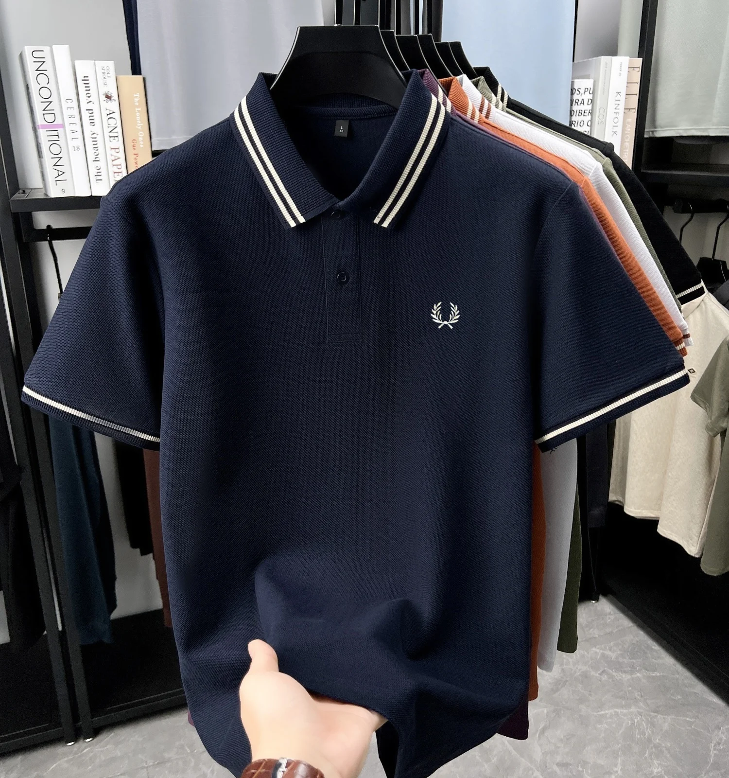 Summer men's comfortable and breathable pure cotton short sleeved business casual exquisite embroidery solid color quality top