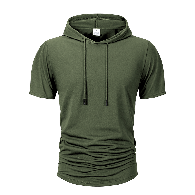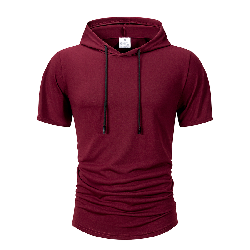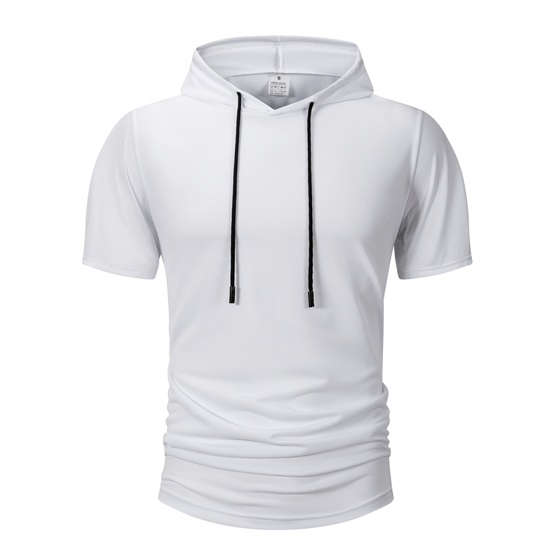 Summer Men's Hooded Sweatwear Casual Short Sleeve Loose T-shirt Solid Color Lightweight Hoodie Fitness Breathable Tops