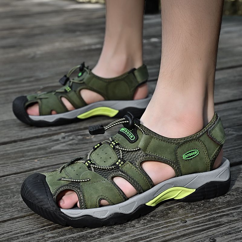 Summer Men's Sandals Classic Genuine Leather Sandals Fashion Outdoor Hiking Shoes Light Breathable Non-slip Sneakers 38-48