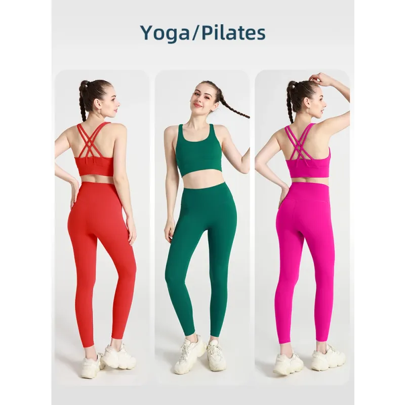 Summer New 2 Piece Yoga Clothes Women's Tracksuit Athletic Cross Back Nylon Yoga Top Women Sports Bra Leggings Pilates Fitness