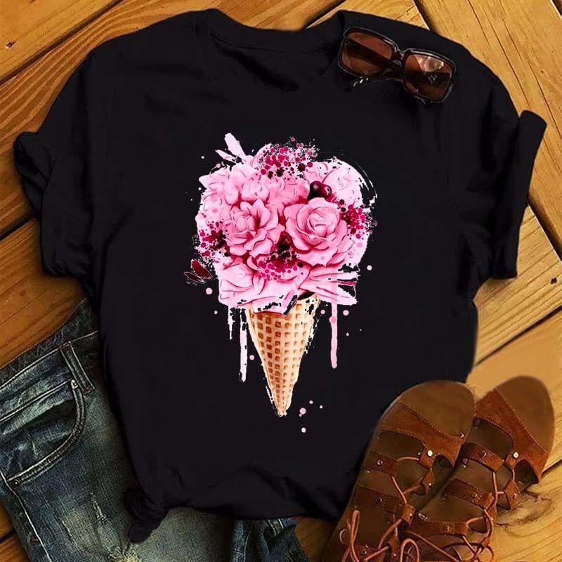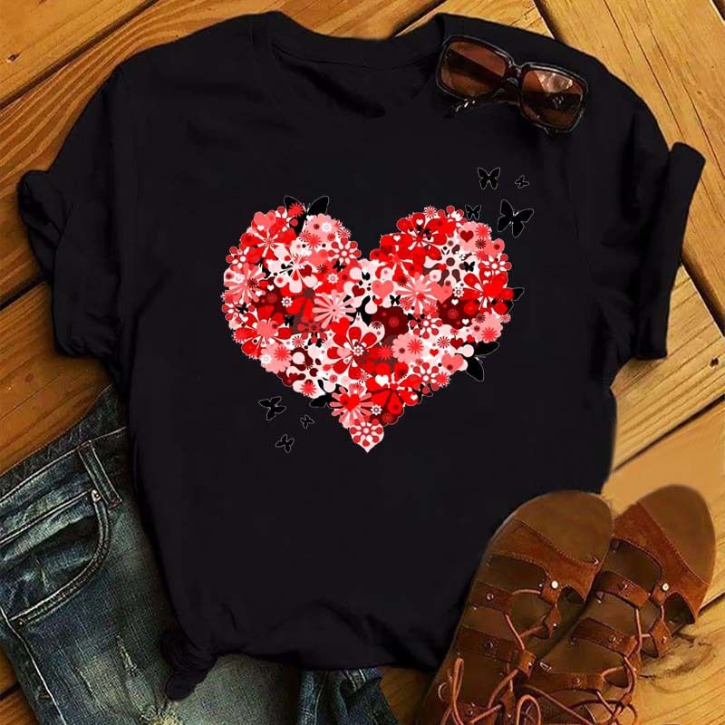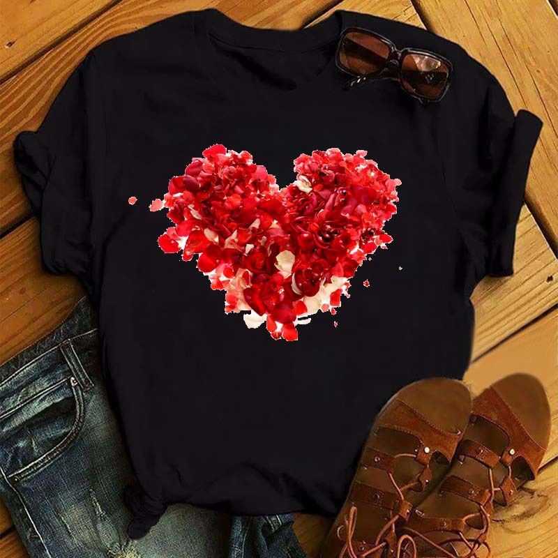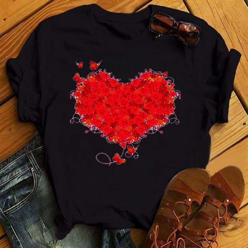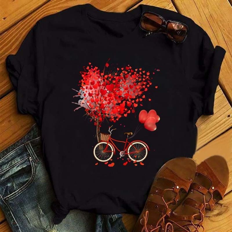 Summer New Fashion Red Love Bicycle Printing Ladies Black T-Shirt Loose Casual 8.style XL