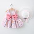 Summer New Girl Fashion Dress Small Chrysanthemum Hanging Strap Big Bow Princess Dress Party Dress 0-3 Years Old