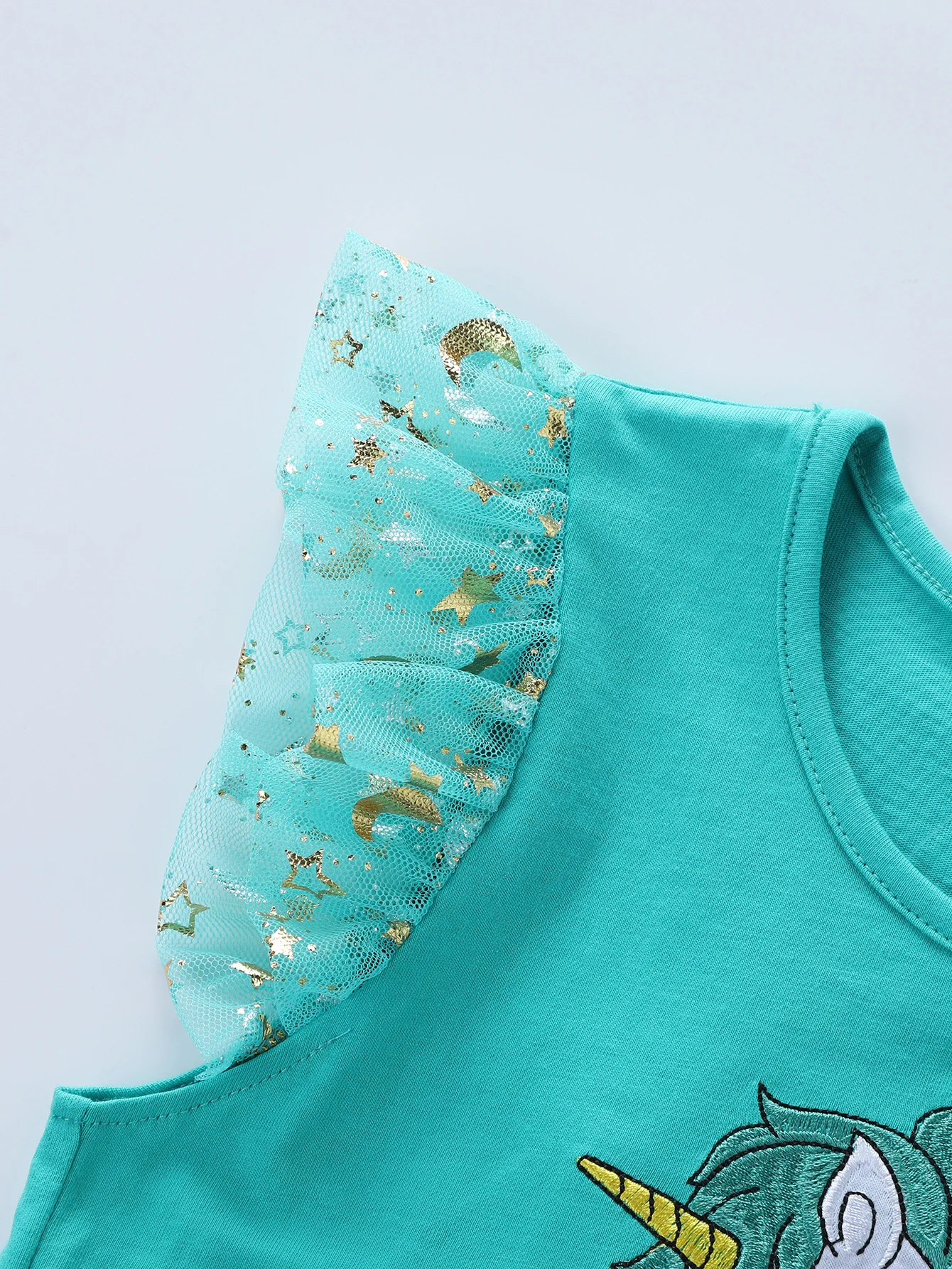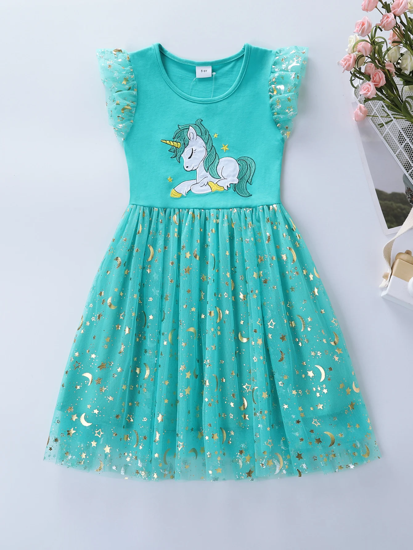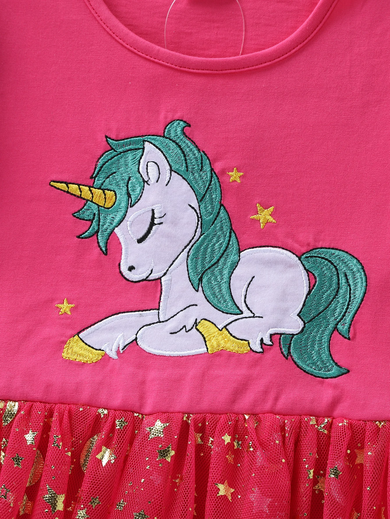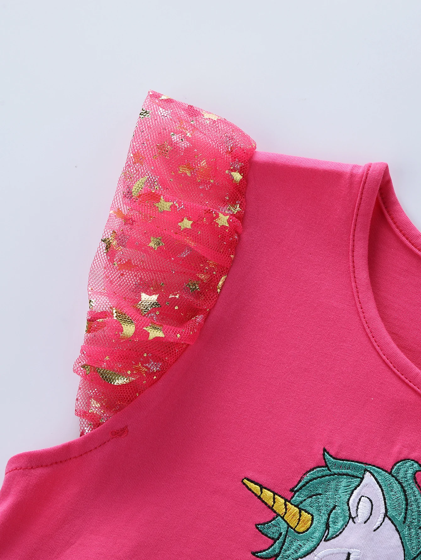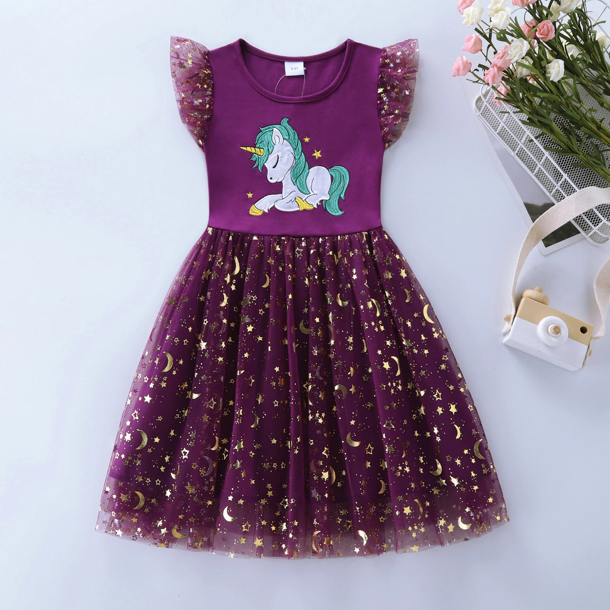 Summer New Girl's Cotton Unicorn Embroidered Mesh Spliced Sleeveless Dress SH1701