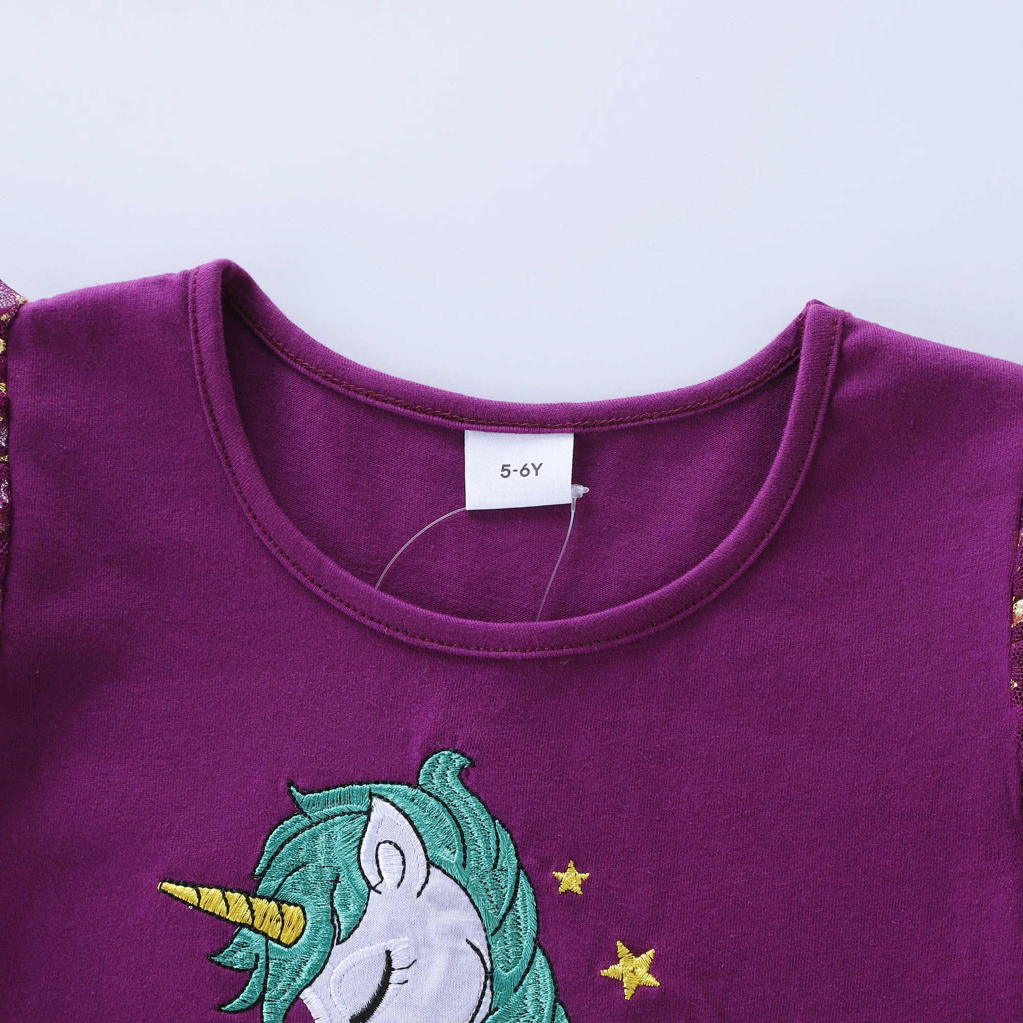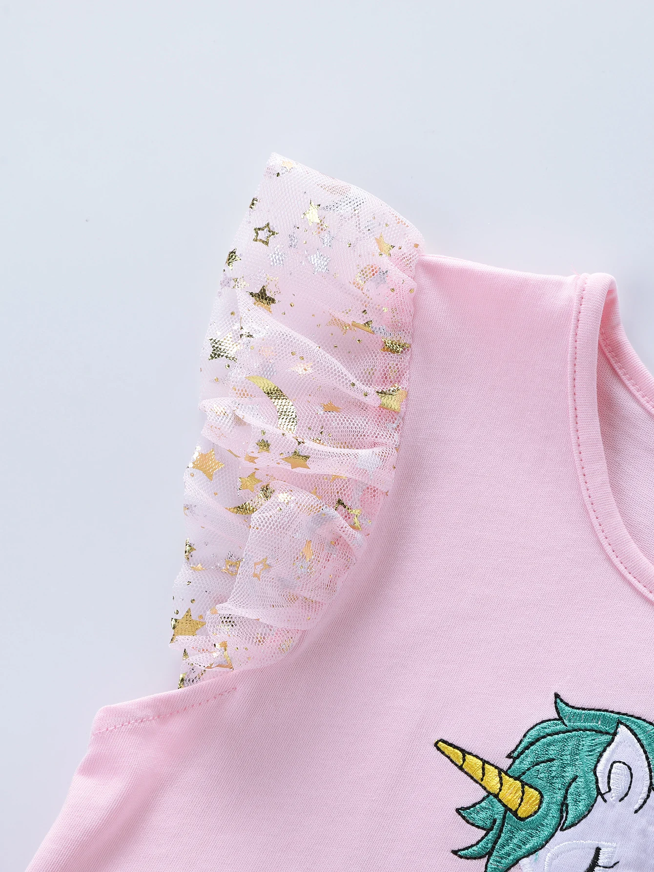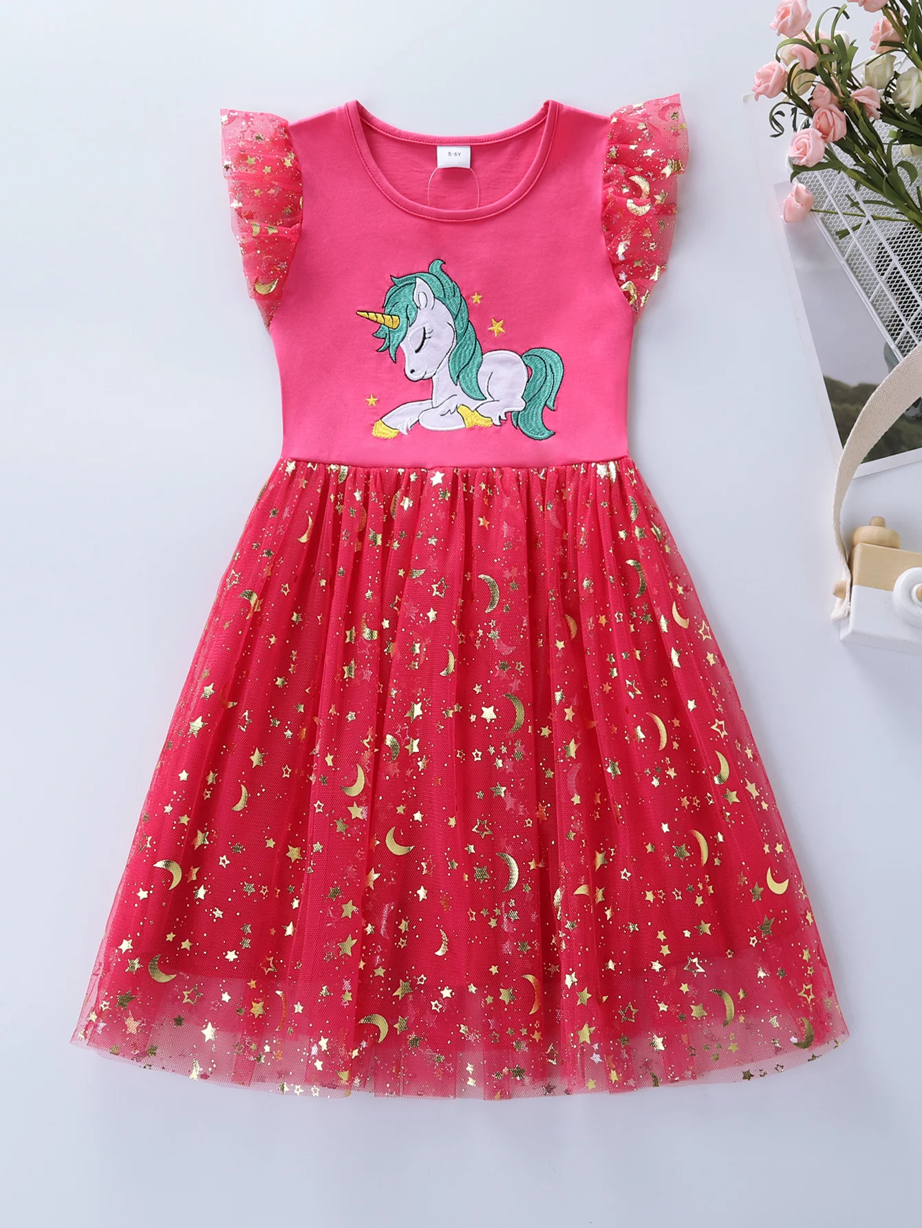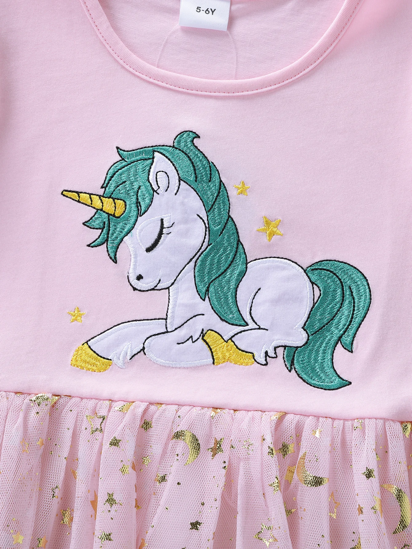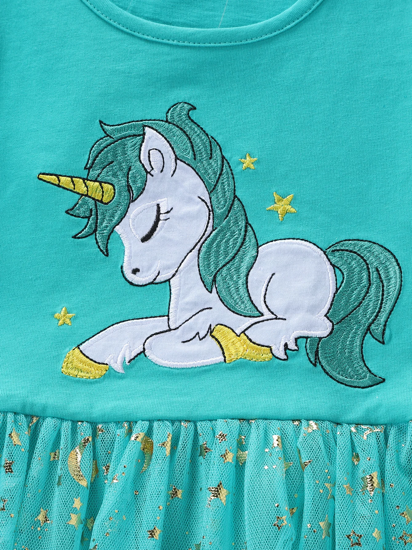 Summer New Girl's Cotton Unicorn Embroidered Mesh Spliced Sleeveless Dress SH1701