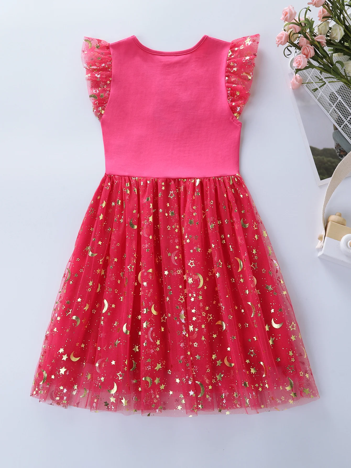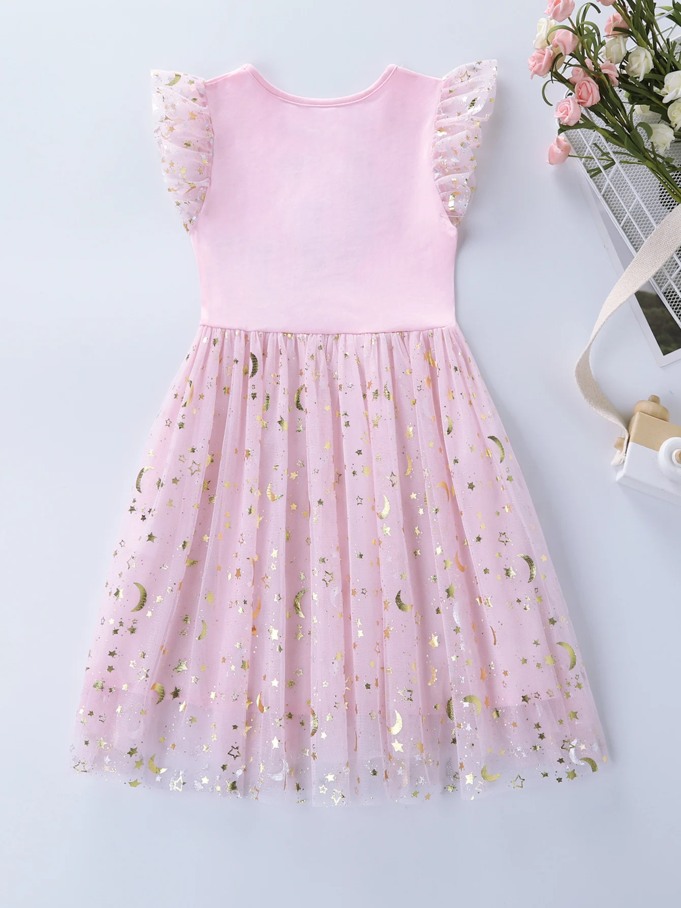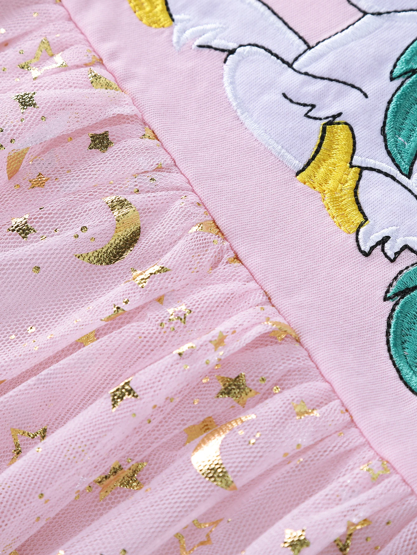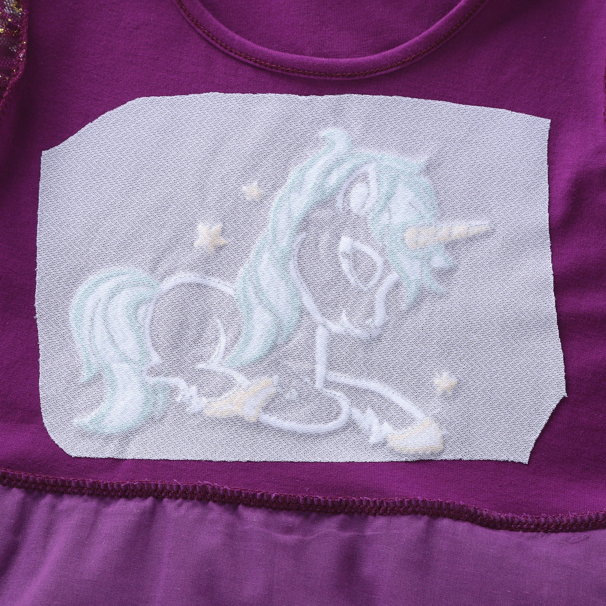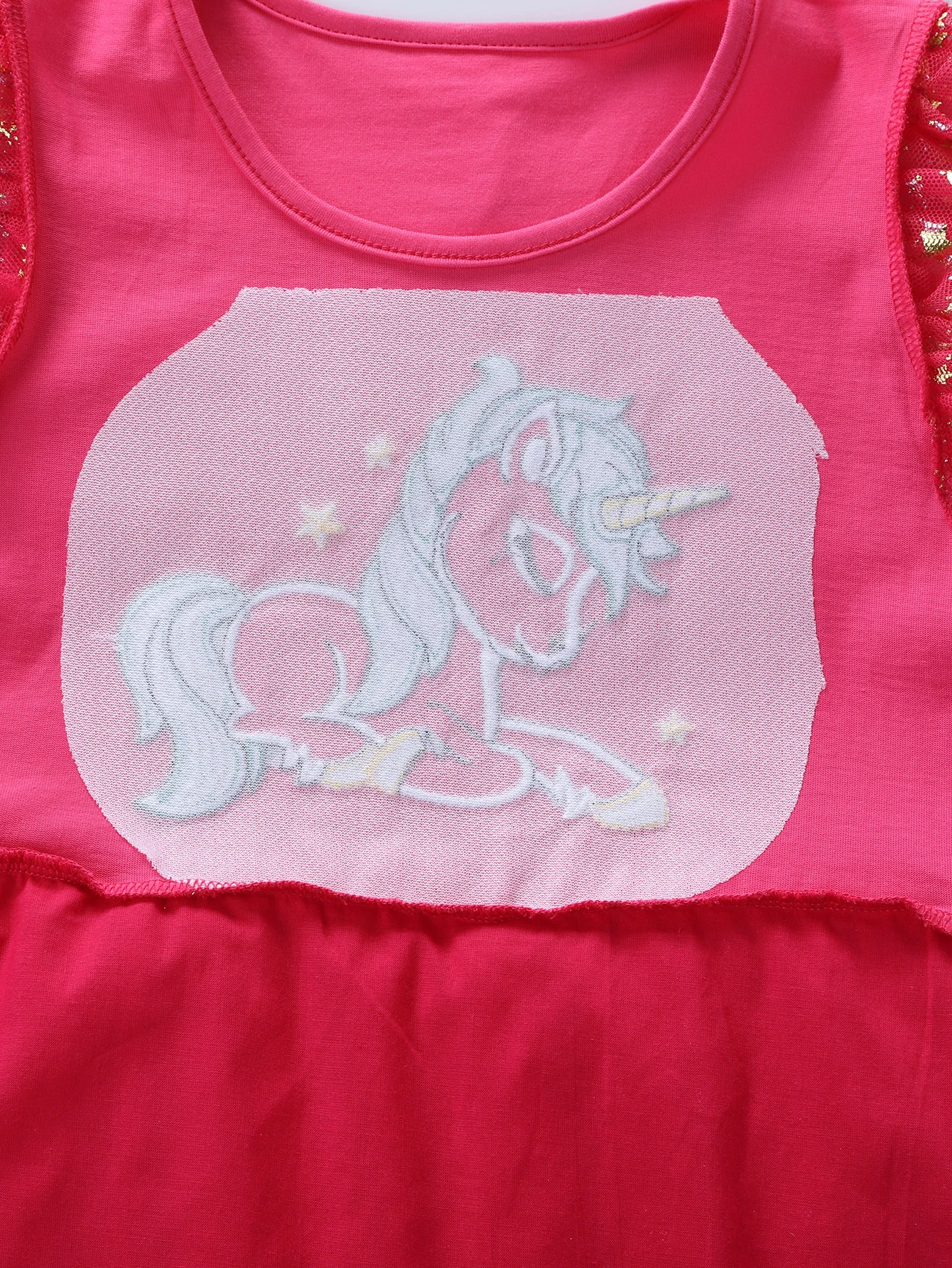 Summer New Girl's Cotton Unicorn Embroidered Mesh Spliced Sleeveless Dress SH1701