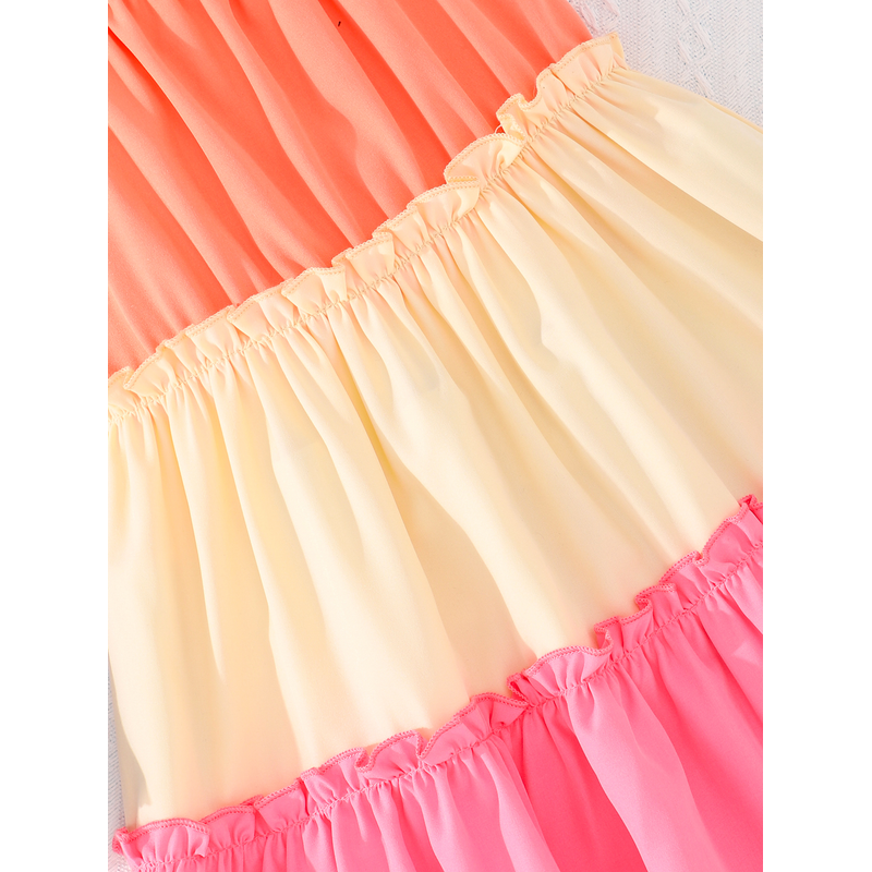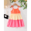 Summer New Girls Dress Casual Wear With Contrasting Color Slip Dress Holiday Beach Tour Long Dress Soft Cool And Comfortable