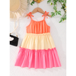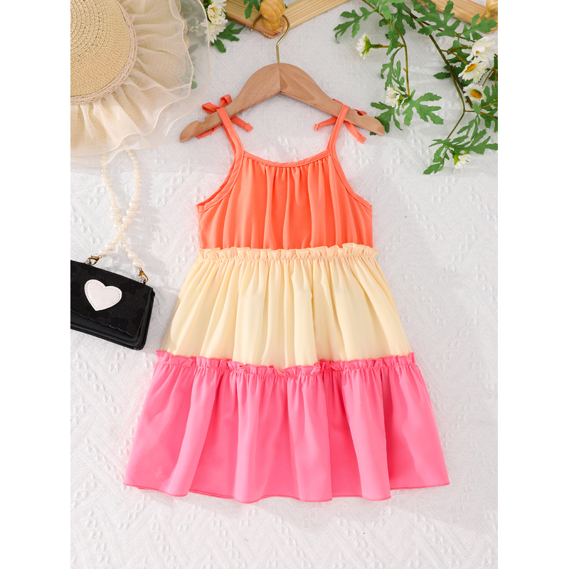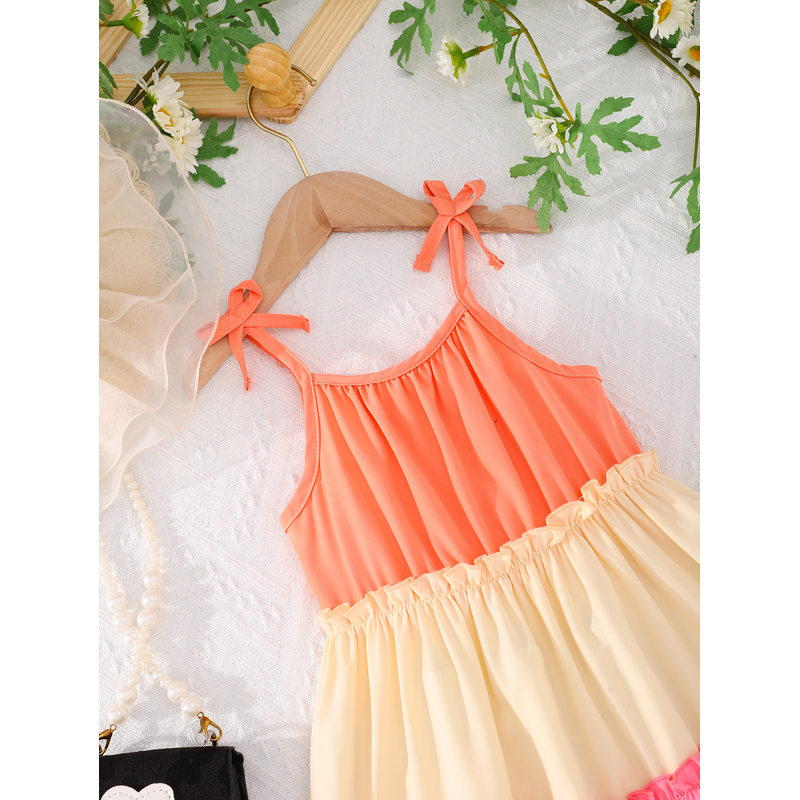 Summer New Girls Dress Casual Wear With Contrasting Color Slip Dress Holiday Beach Tour Long Dress Soft Cool And Comfortable