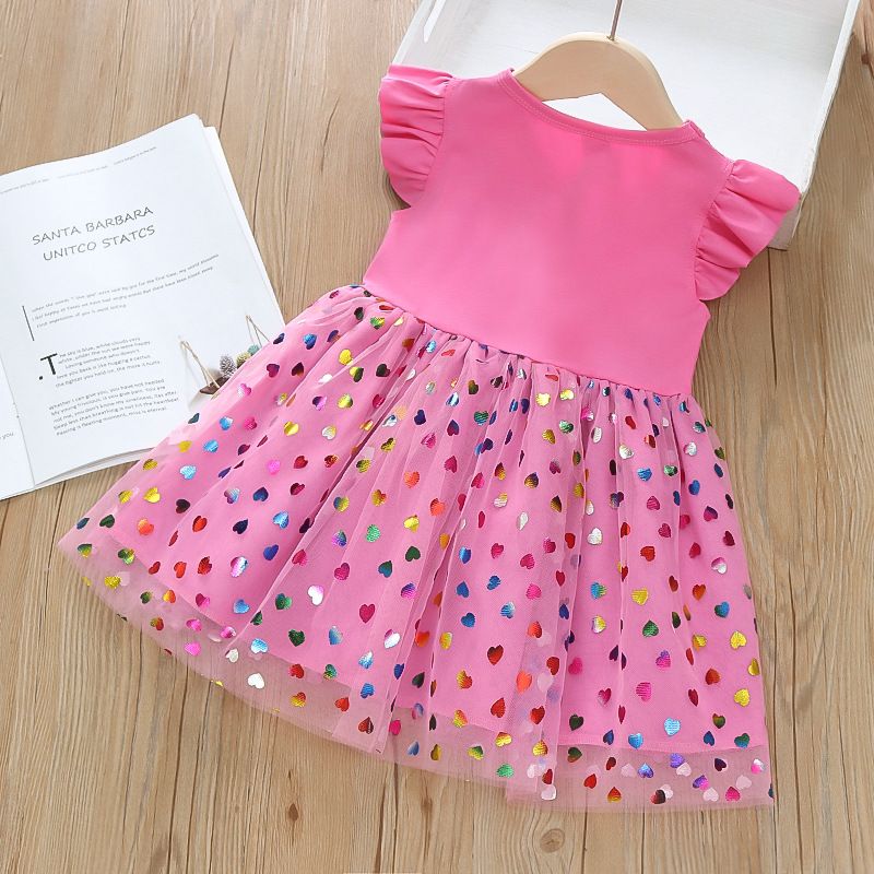 Summer New Girls' Skirt Flying Sleeve Rainbow Unicorn Princess Skirt Super Fairy Love Mesh Splicing Dress