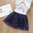 Summer New Girls' Skirt Flying Sleeve Rainbow Unicorn Princess Skirt Super Fairy Love Mesh Splicing Dress