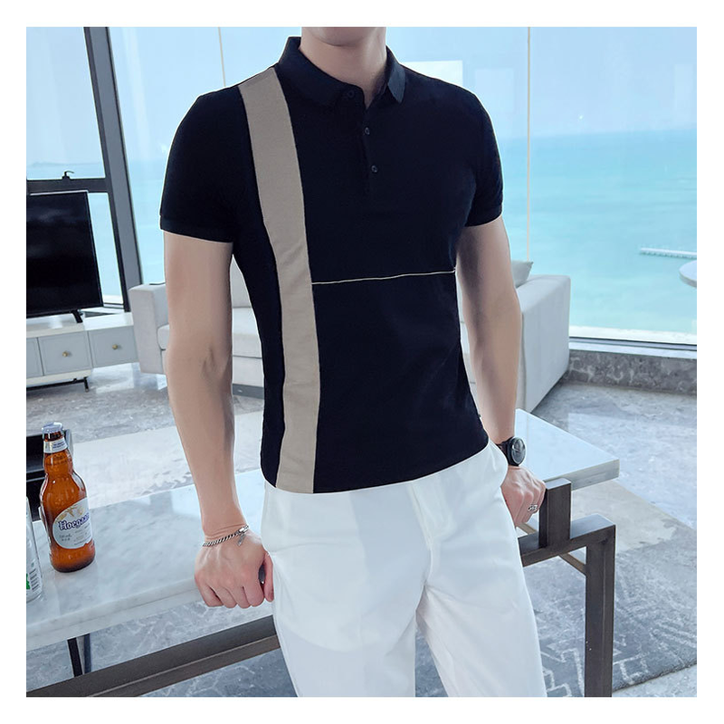 Summer New Men's British Striped Casual Short-sleeved Polo Shirt Black 3XL