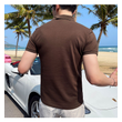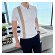 Summer New Men's British Striped Casual Short-sleeved Polo Shirt Brown XL