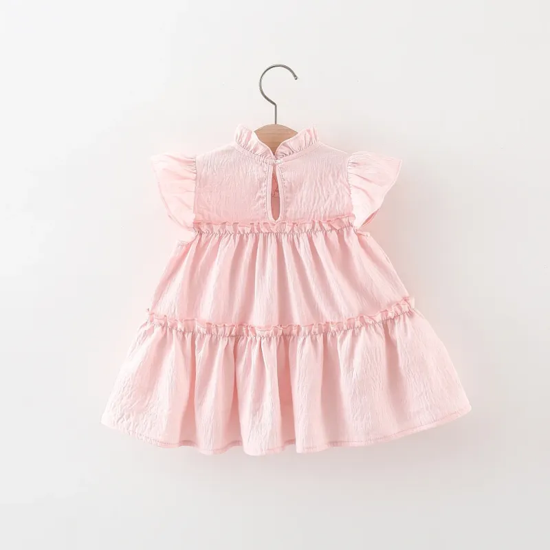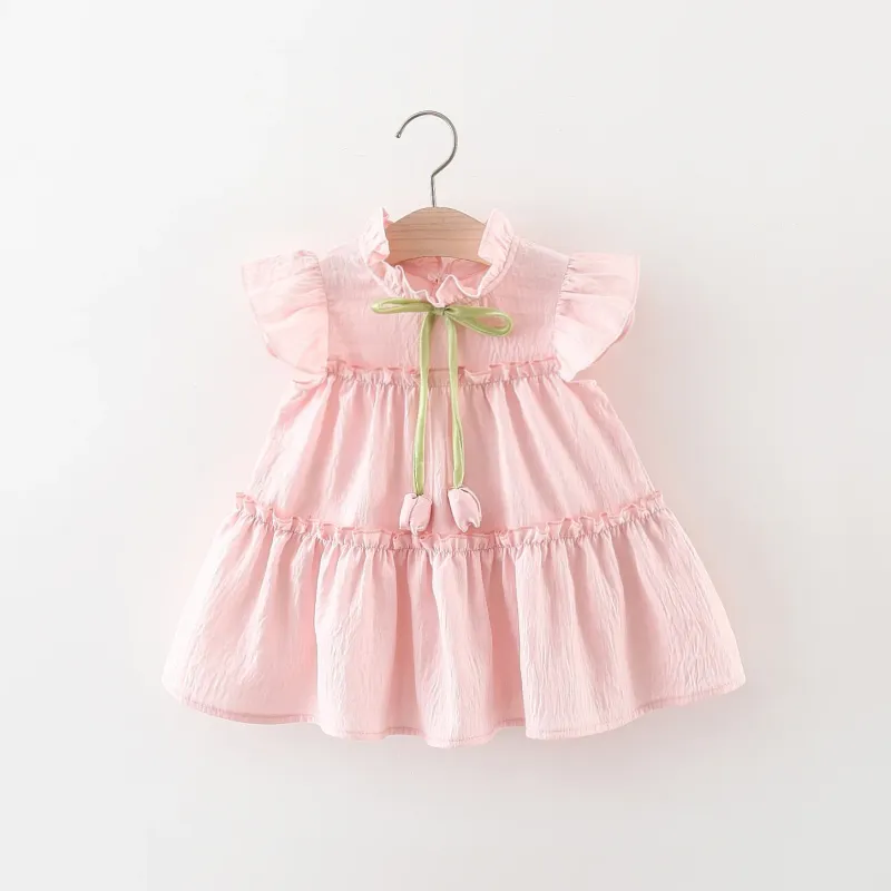 Summer New Pink Tulip Baby Girl Dress, Cute Ruffled Sleeve Children'S Clothing For Babies Aged 9 Months To 4 Years Old
