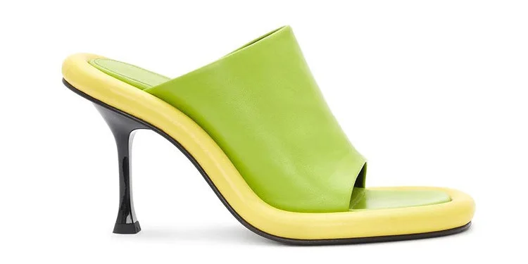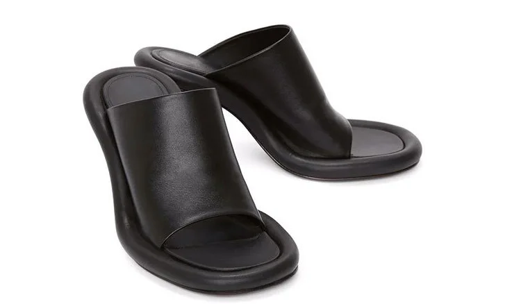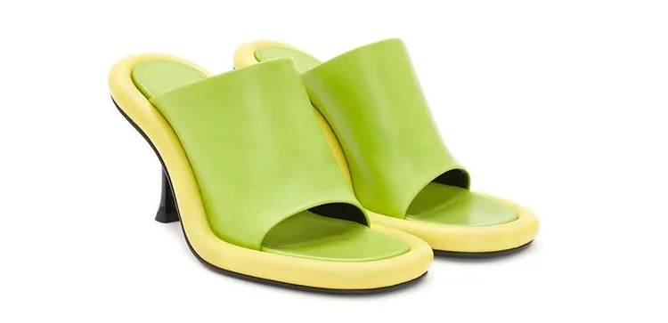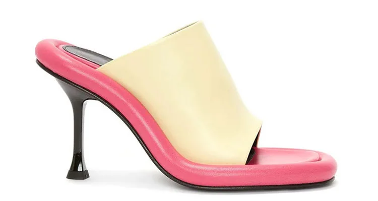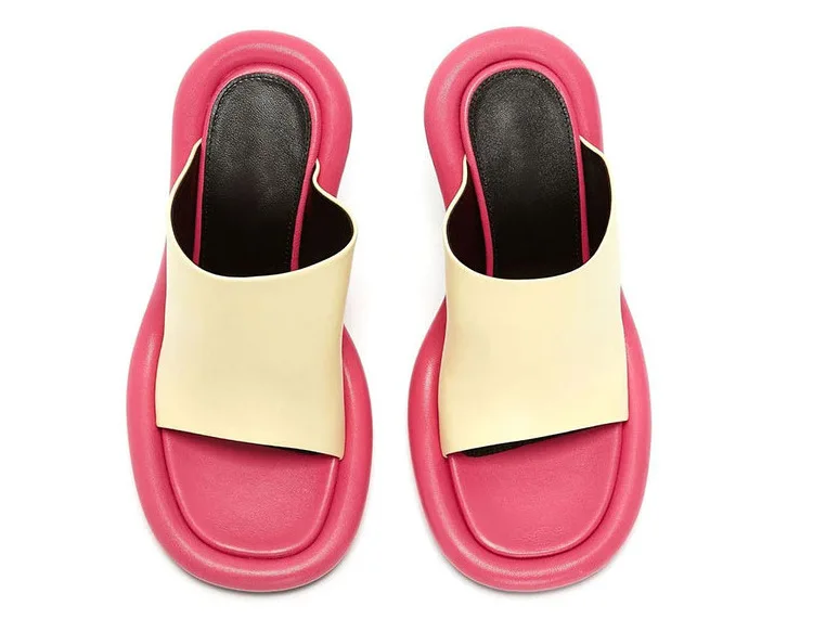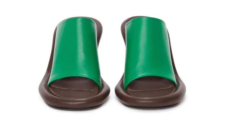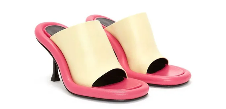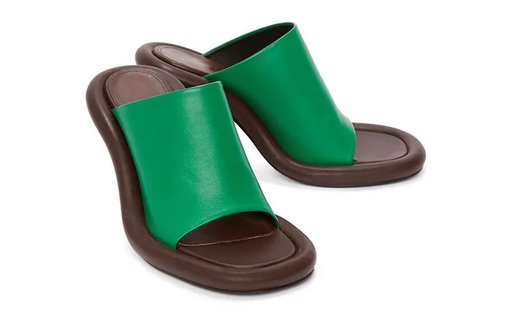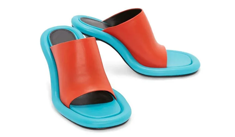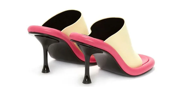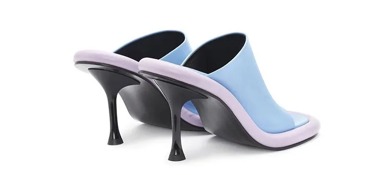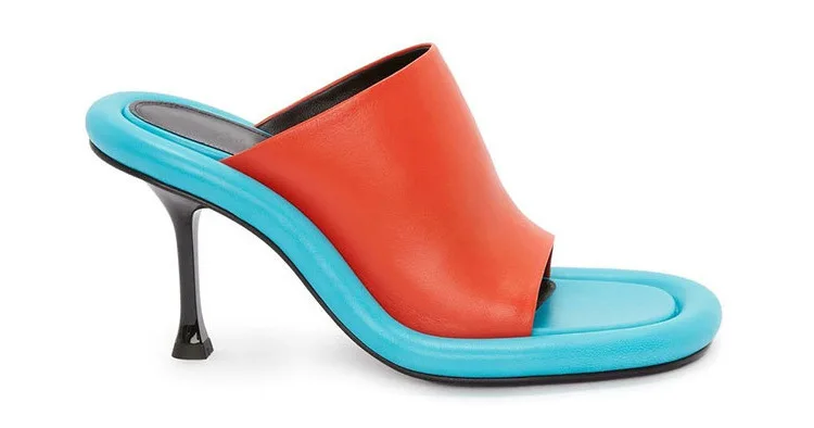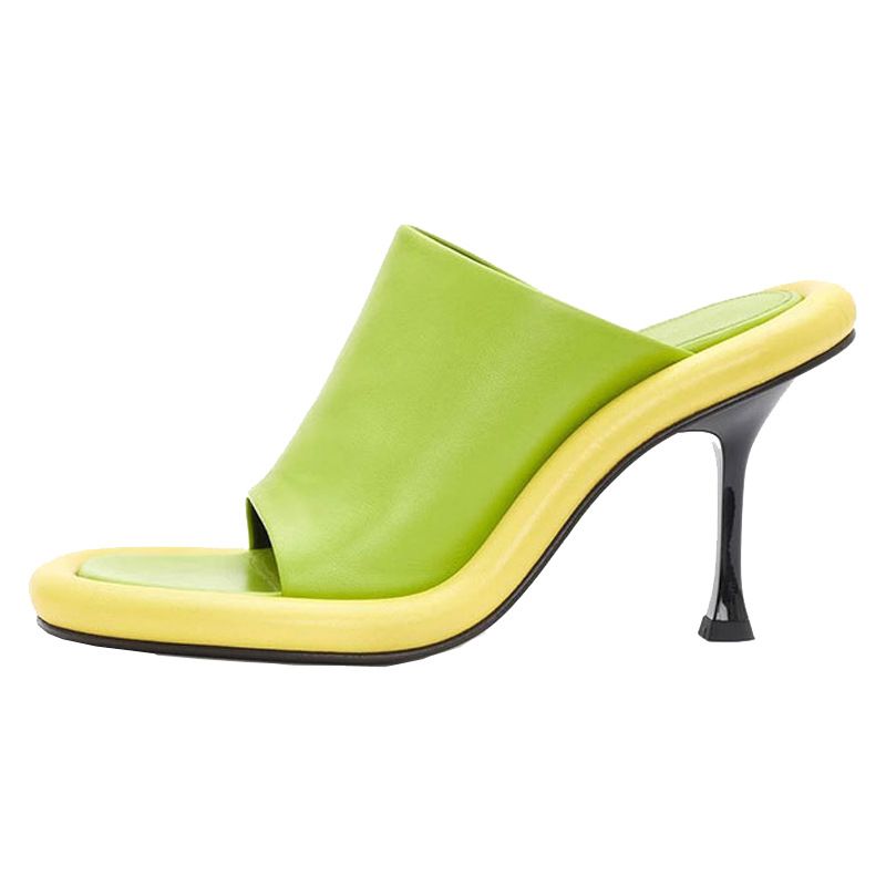 Summer New Round Toe Open Toe Color Matching Stiletto Mule Slippers Thick Bottom Soft Surface Large Size Catwalk Sandals Leisure